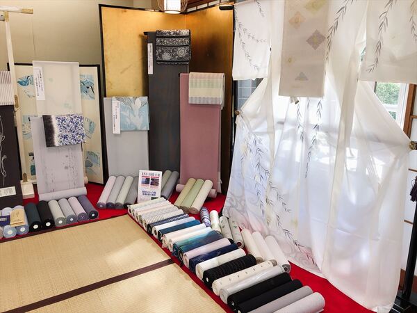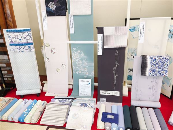 正絹の単衣用着尺「さわやかちりめん」や本染め浴衣「源氏物語」など、見ていて楽しく、さわやかになれる売場を作りました!