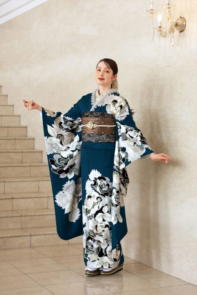 最近、特に注目を集めている振袖のトレンドカラーは「濃い色」です。古典柄であれ、モダン柄であれ、深い紺、黒、緑といった濃色の振袖は、写真映えも良く、大変人気が高まっています。