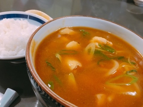 ここは、夜は鶏鍋屋さんになるので、ランチのカレーうどんは、京風鶏出汁の優しい味!その中でもピリッとカレーの辛さはしっかりしています。