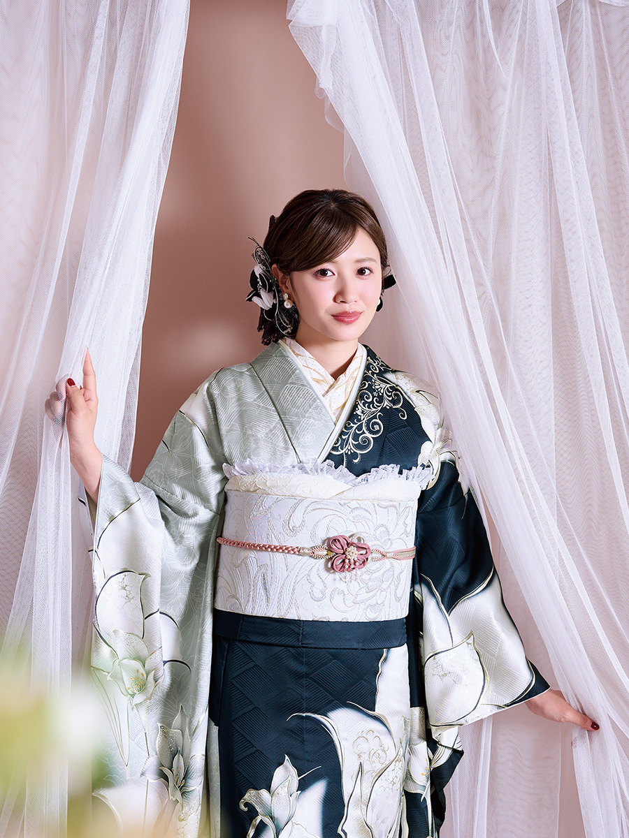 伝統に育まれた正統派の友禅。 染め描かれた吉祥の意匠が、二十歳のフォーマルに[...]